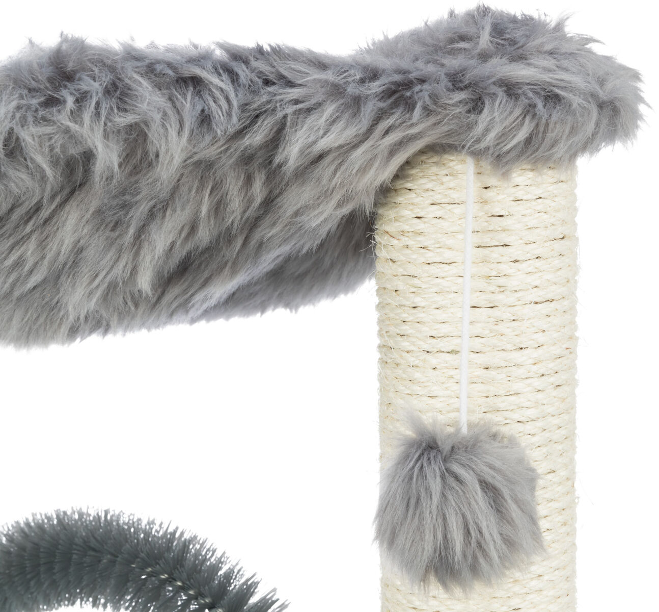 Baza Scratching Post w/Brush klórustaurinn með palli og bæli fyrir innikisur. Tryggðu að kisa fái útrás á öðru en stofuhúsgögnunum. Klórustaurinn er smekklegur og úr sterku hampreipi (sisal) með svefnstað fyrir kisulóruna. Áfastur feldbursti fylgir og plússefnið er með 6mm löngum hárum.