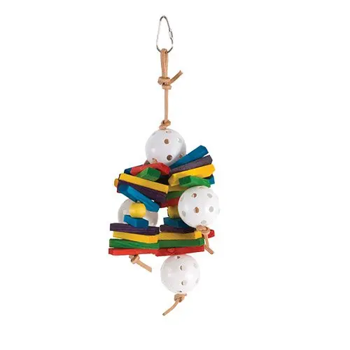 Plastkúlur á leðurstrimlum með litríkum viðarpjötlum - fyrir miðfugla. Stærð: 30,5 x 12,5 cm. Þyngd: 127 g.