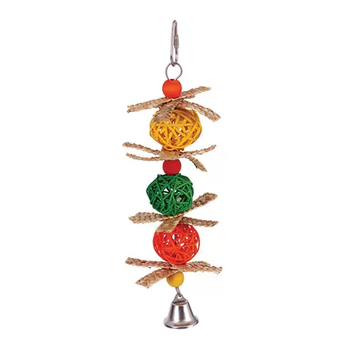 Skrautlegar bastkúlur til tætingar. Hentar vel smærri fuglum og miðfuglum. Stærð: 25 x 10 cm. Þyngd: 32 g.