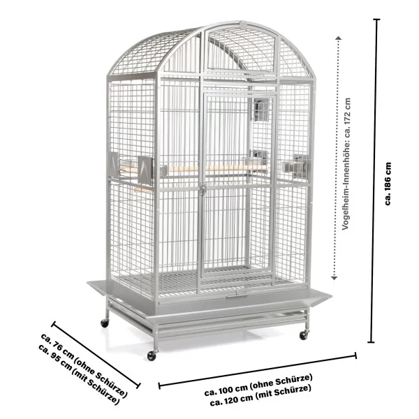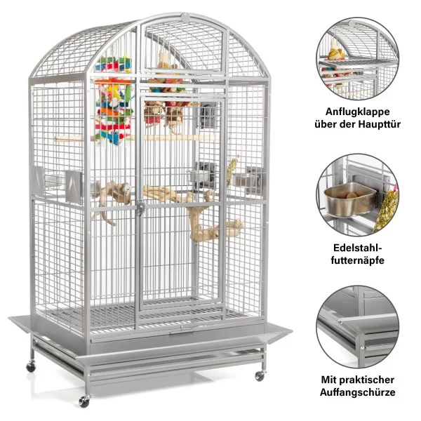Castell Dome búrið frá Montana er það stærsta í línunni og hentar vel fyrir stærri páfaguka, allt upp í arnpáfa. Búrið er mjög rammgert en samt stílhreint og fallegt. Það fer vel á hvaða heimili sem er og þolir stanslaust klifur og leiki. Á því eru hlífar til að halda rusli frá gólfinu og grind fyrir fóður og annað neðan á búrinu. Búrið fæst í platinum og antíkgráu.