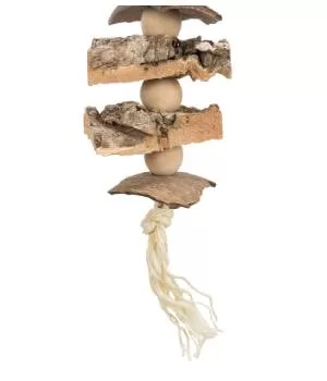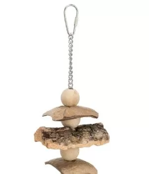 Sterkt nagleikfang úr korkpjötlum, kókoshnetubrotum og viðarkúlum fyrir miðfugla. Stærð: 37 cm.