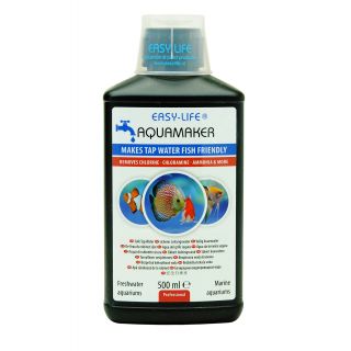 Easy-Life AquaMaker er bætiefnablanda fyrir nýuppsett fiskabúr, bæði ferskvatns og sjávar. Gagngert þegar gerða eru eða gera þarf öflug vatnsskipti. Fjarlægir þungmálma og klórsambönd út vatni. Binst ammóníaki, nítríti og nítrati og gerir skaðlaust. Ver slímhúð og tákn fiska.