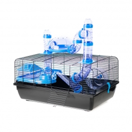 Jerry 1 Avec Panorama er rúmgott grindarbúr með alls kyns kifur rörum og bæli sem hentar einkarvel undir nokkra hamstra eða mýs. Botninn er úr plasti sem heldur botnefnum innanbúrs. Efri hlutinn er svört rimlagrind til loftunar og klifurs. Klifurpallar, fæðuílát, vatnflaska, kofar, plastpallar og klifurrör fylgja með. Opnanlegur framhleri.