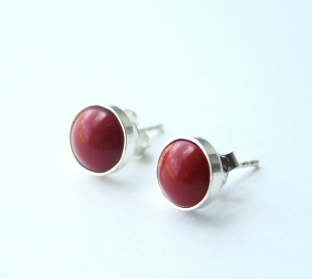 Little Atom Earrings – Lobster eru snotrir, rauðleitir perlueyrnalokkar í silfurumgjörð. Passa vel í eyrun!