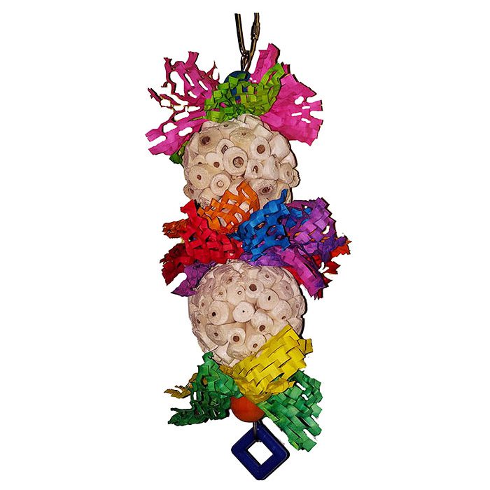 Bastkúlur með litríkum bastlengjum handa stærri fuglum.