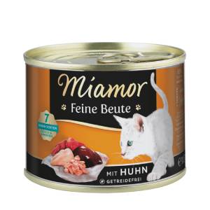 Miamor Feine Beute Chicken eru gæða kjúklingaafurðir í dós. Algjört lostæti sem fær kattahjörtu til að slá hraðar! Auðmelt, án kornafurða og soja, litar- og rotvarnarefna. Heilfóður fyrir fullorðna ketti.