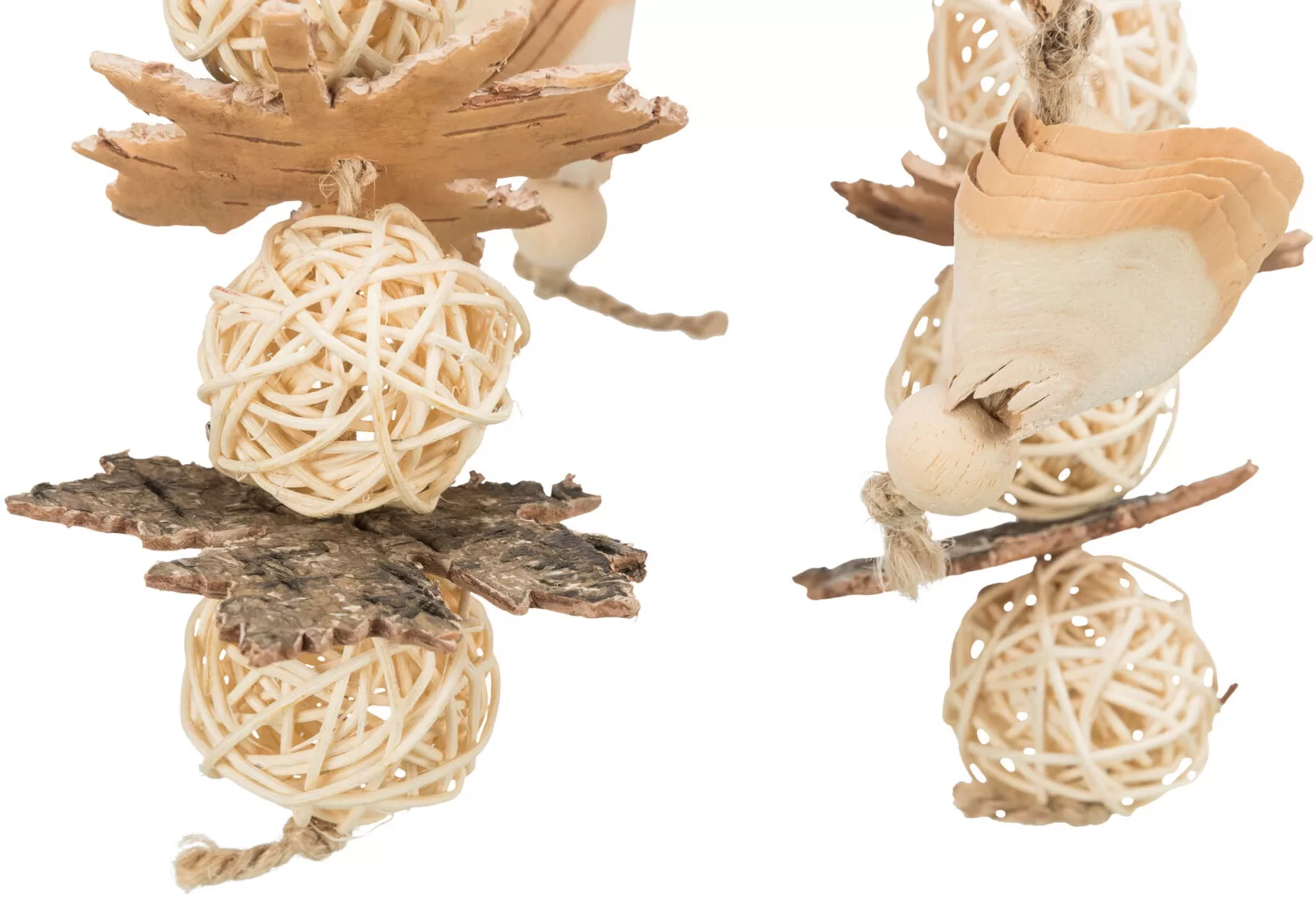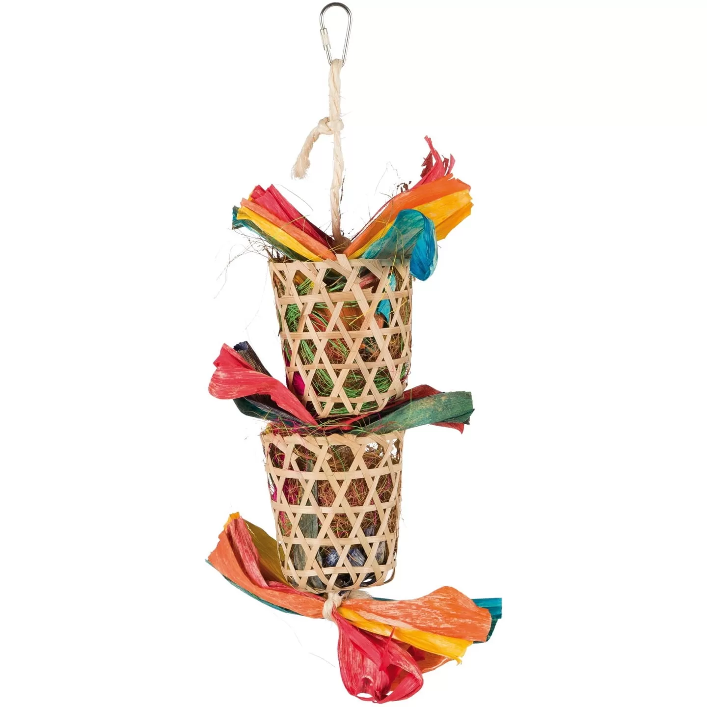 Fínar bastkörfur fylltar af hreiðurefnum, pálmalufum og berki. Fyrir smærri fugla ss. gára og dísur. Stærð: 35 cm.