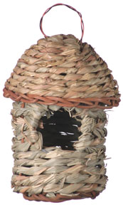 Fallegt hreiðurhús úr basti fyrir fínkur. Karfan hangir inni í búrinu. Stærð: 17,5 x 12,5 cm. Þyngd: 95 g.