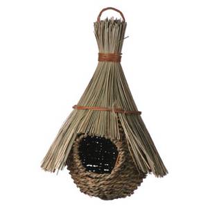 Fallegt og stórt hreiðurhús í Kyrrahafseyjastíl fyrir fínkur og smáfugla. Karfan hangir inni í búrinu. Stærð: 38 x 21,5 cm. Þyngd: 200 g.