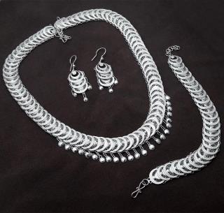 Scales Model w/Balls - Triple Set er skartgripasett fyrir konur - hálsmen, armband og eyrnalokkapar í stíl með hreisturmótífi og kúlum! Virkilega fallegt!