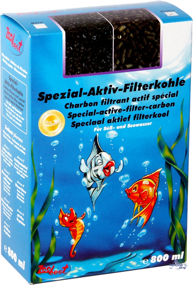 Special Active Filter Coal frá ZooBest eru mjög virk síukol fyrir ferskvatns- og sjávarbúr. Þau sía kröftuglega frá skaðleg klórsambönd, metangas, litarefni, tæra vatnið og eyða lykt. Tilvalin í dæluna eftir lyfjagjöf til að fjarlægja skaðlegar lyfjaleifar. Virknin endist í um 3 mánuði. Ber að fjarlægja úr síunni við lyfjagjöf. Yfirborðsvirkni kolanna er um 1.000 m²/g þ.a. síuvirknin á mengunarvalda er mjög mikil.