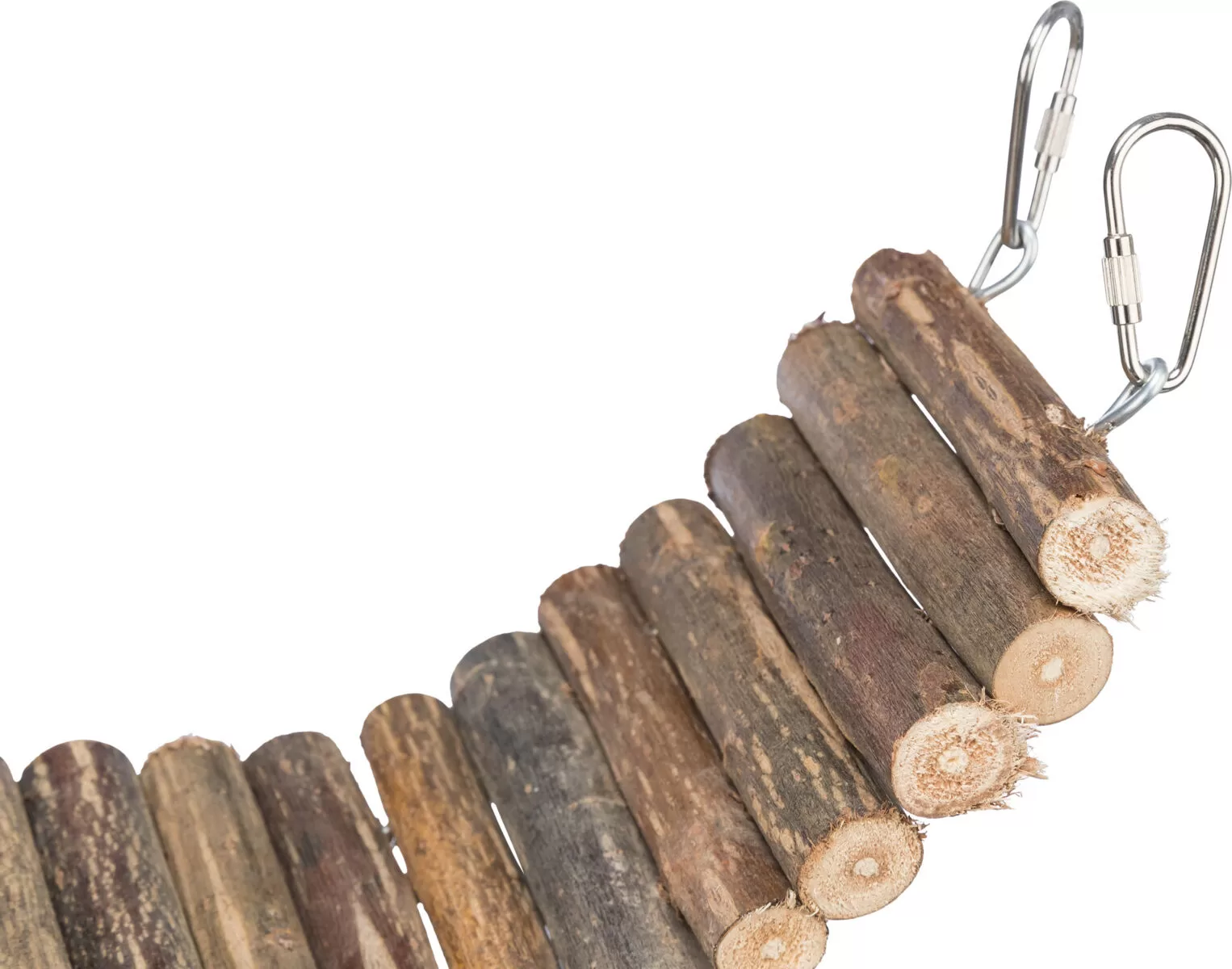 Suspension Bridge Willow er skemmtileg brú úr pílviðarbútum. Má snúa á alla vegu. Fest beggja vegna.